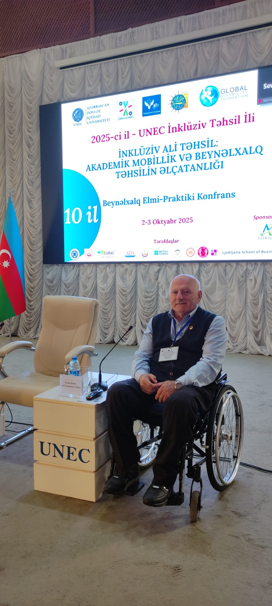 The Global Disability Foundation (GEV) has successfully concluded its presentations at the international conference, “Inclusive Higher Education: Academic Mobility and Accessibility of International Education,” held in Baku, the capital of Azerbaijan. The conference, which took place at the Azerbaijan State University of Economics (UNEC) on October 2-3, 2025, brought together experts in the field from around the world.